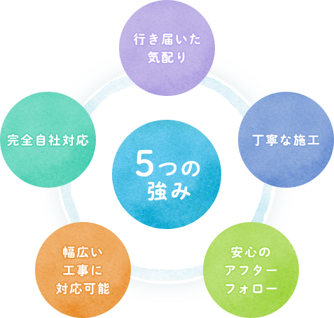 行き届いた気配りと丁寧で確実な施工をいたしますので、ご安心ください。